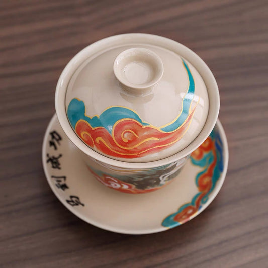 Ru Kiln Year of the Horse Hand-Painted "Success Upon Arrival" Gaiwan | Premium Ceramic Kung Fu Tea Set