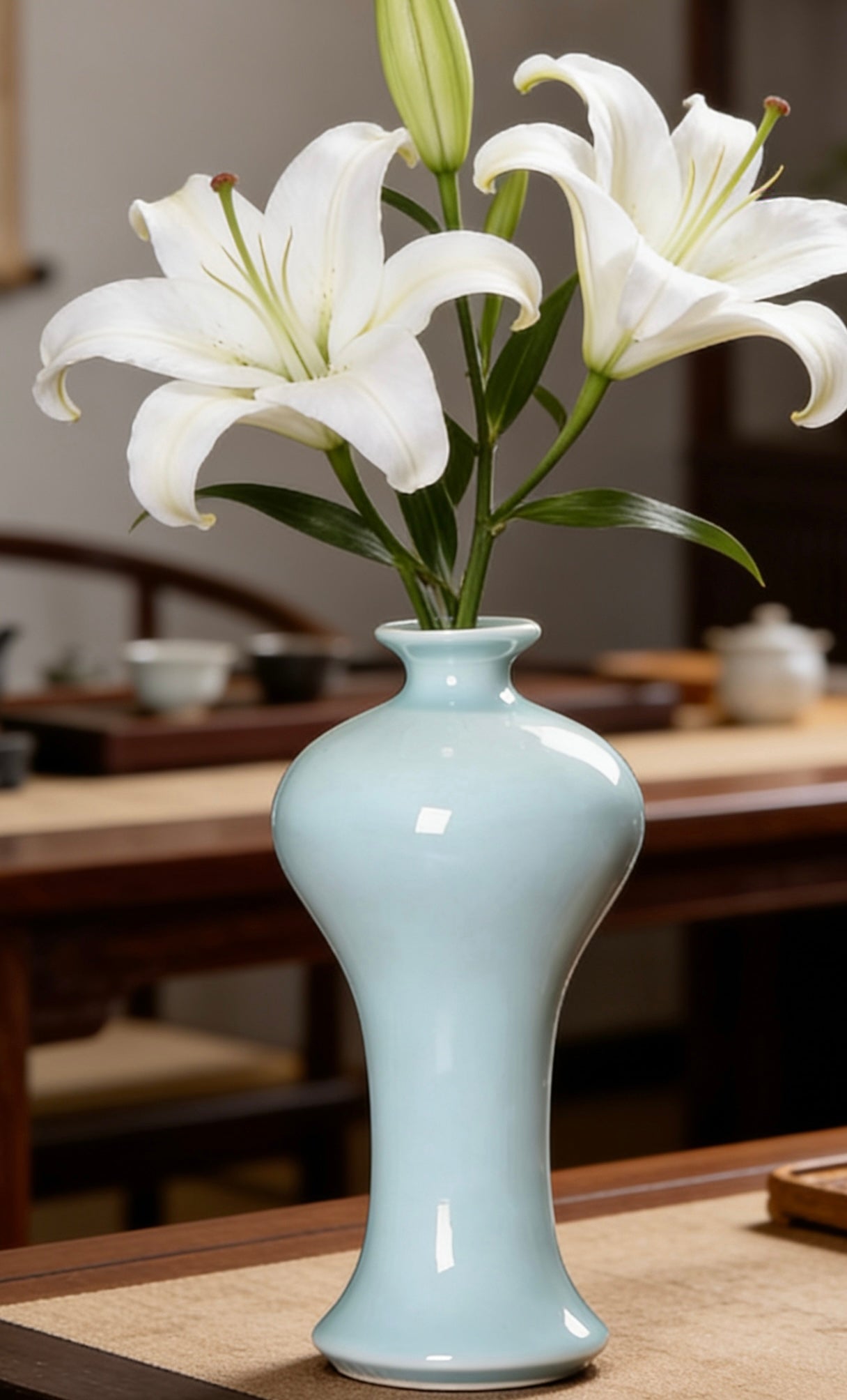 This elegant vase, named Mei Ren Zui (Beauty's Intoxication), is a masterpiece of Longquan celadon craftsmanship, blending traditional Chinese aesthetics with modern home elegance.