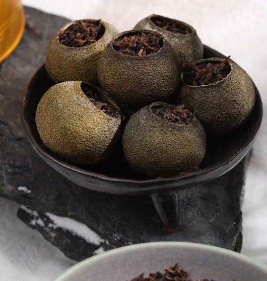 3. Artful Filling: Each hollowed citrus is hand-stuffed with premium Pu-erh, ensuring a balanced ratio of peel to tea.